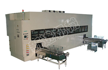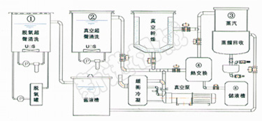 设备主要是利用多个工位的槽体在常压、真空条件下对工件进行快速清洗和干燥。设备由于设备采用多工位方式清洗和干燥同时进行大大的提高了工件的清洗量。在真空条件下溶剂结合超声波、转动/抛动等方式对精密零件(带盲孔、螺纹孔、细孔)的清洗起到效果,在真空条件下清洗完成后设备会对工件进行通碳氢蒸汽进行清洗和加热,完成后抽高真空(10mbar~30mbar)对工件进行突沸干燥。