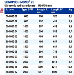 ●棒式振荡器的工作效率通过 25千赫完成淤泥分解而得到了印证。该振荡器同样具有的工作安全性,为此"只需"一个声波励磁器。与相同放射长度的传统棒式振荡器相比,SONOPUSH® HD系列棒式振荡器的功率提高20%以上,并实现持续性全方位放射。